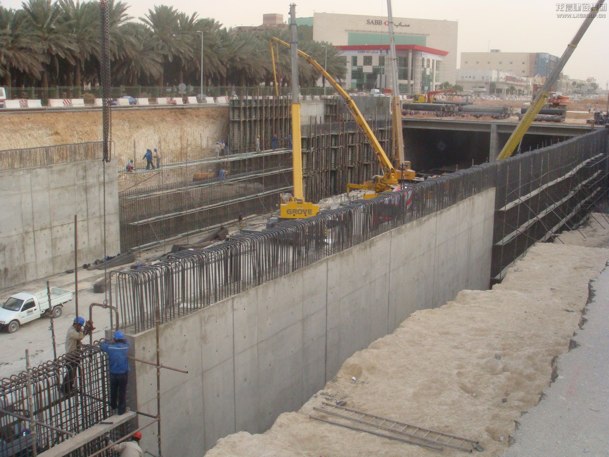 項目位于沙特首都利雅得市阿仆杜拉國王大道上,全長5KM,分為阿卜杜拉•阿齊茲地下通道、歐萊雅路-法赫德國王路隧道、塔卡蘇斯地下通道及普瑞恩施•土耳其路地下通道。總包方為沙特奧吉公司,龍信公司分包該項目的全部混凝土結構工程,澆筑混凝土達到16萬立方,分包合同總金額為3200.00萬里亞爾。于2008年9月開工,并在2011年02月完工,工期比總包方規定的時間提前了半年,并且質量上面受到了總包的一片好評。