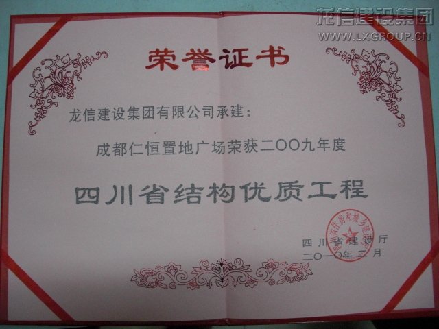 成都仁恒獲四川省優質結構