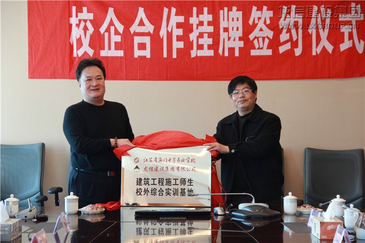 為促進校企深度合作,完善校企雙贏機制,實現(xiàn)校企協(xié)同發(fā)展, 2015年2月9日下午,在龍信大廈二樓會議室舉行了龍信集團與海門中專共建師生綜合校外實訓基地的揭牌儀式。海門中專的陸衛(wèi)平副校長、郁建菊主任、張慧琴主管、楊海燕老師、黃其中老師,我集團總經(jīng)理唐愛東、監(jiān)事會主席卞勤華、集團常務副總工程師劉瑛、經(jīng)營部經(jīng)理賀廣海、施工技術(shù)部經(jīng)理張豪、人力資源部經(jīng)理黃麗英、人力資源部主管宋斌斌參加了揭牌儀式。