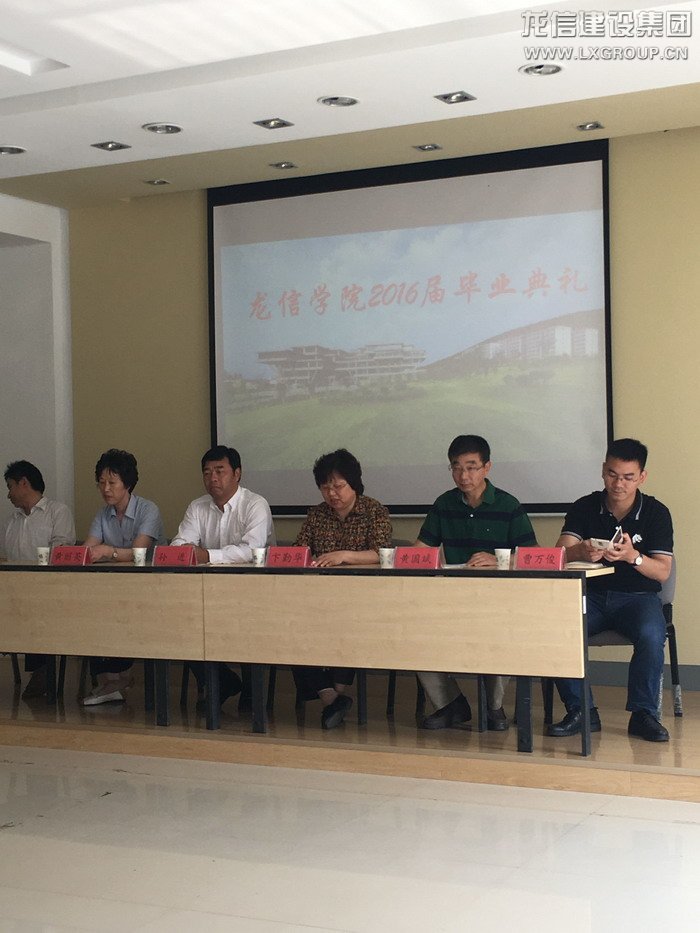 2016年6月7日上午,龍信學院“2+1”模式第二期畢業(yè)典禮在江蘇建筑職業(yè)技術學院利亞樓報告廳舉行。集團公司工會主席卞勤華、人力資源部黃麗英、江蘇建院校長孫進、建工學院陳年和院長、黨委書記黃國斌等領導和58名2016屆龍信學院畢業(yè)生參加典禮。