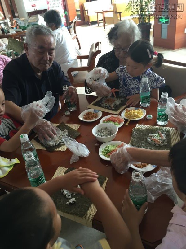 表演結(jié)束后,小朋友們用小手牽著爺爺奶奶的手,一起到樂頤薈餐廳制作壽司。他們與爺爺奶奶們圍桌而坐,為爺爺奶奶們捶背按摩,長者們更是拉著孩子們的手,對孩子們寵愛有加,老少同樂。長者與小朋友們分享了親手制作的壽司。看著這其樂融融的場景,我們不禁聯(lián)想,善待現(xiàn)在的長者,就是善待以后的自己。