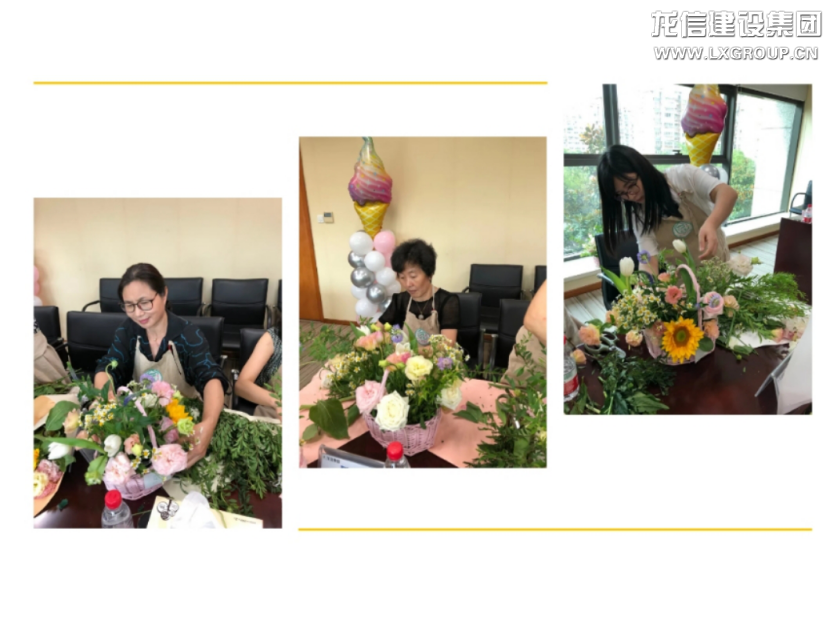 參觀結束,高管家屬在龍信大廈二樓會議室進行座談并開展插花活動。座談中,大家表達了各自想法,肯定了公司近來年的發展,對公司給予的關心關愛表示感謝,祝愿公司在新時代高質量進程中,跑出發展加速度,創造更加美好的明天!隨后進行的插花活動中,花藝老師介紹了鮮花名稱、特點及花籃制作步驟。大家在這一過程中,不僅欣賞到花的自然美,還體驗到人與大自然,人與藝術的交流,陶冶情操的同時提升了藝術修養。