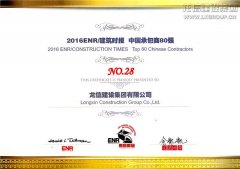 11月25日, 由美國《工程新聞記錄》(ENR)和中國《建筑時報》共同主辦的2016年中國承包商80強榜單在福州發布,龍信建設集團有限公司第八次入選該榜單,此次名列第28位,較去年排名提升">